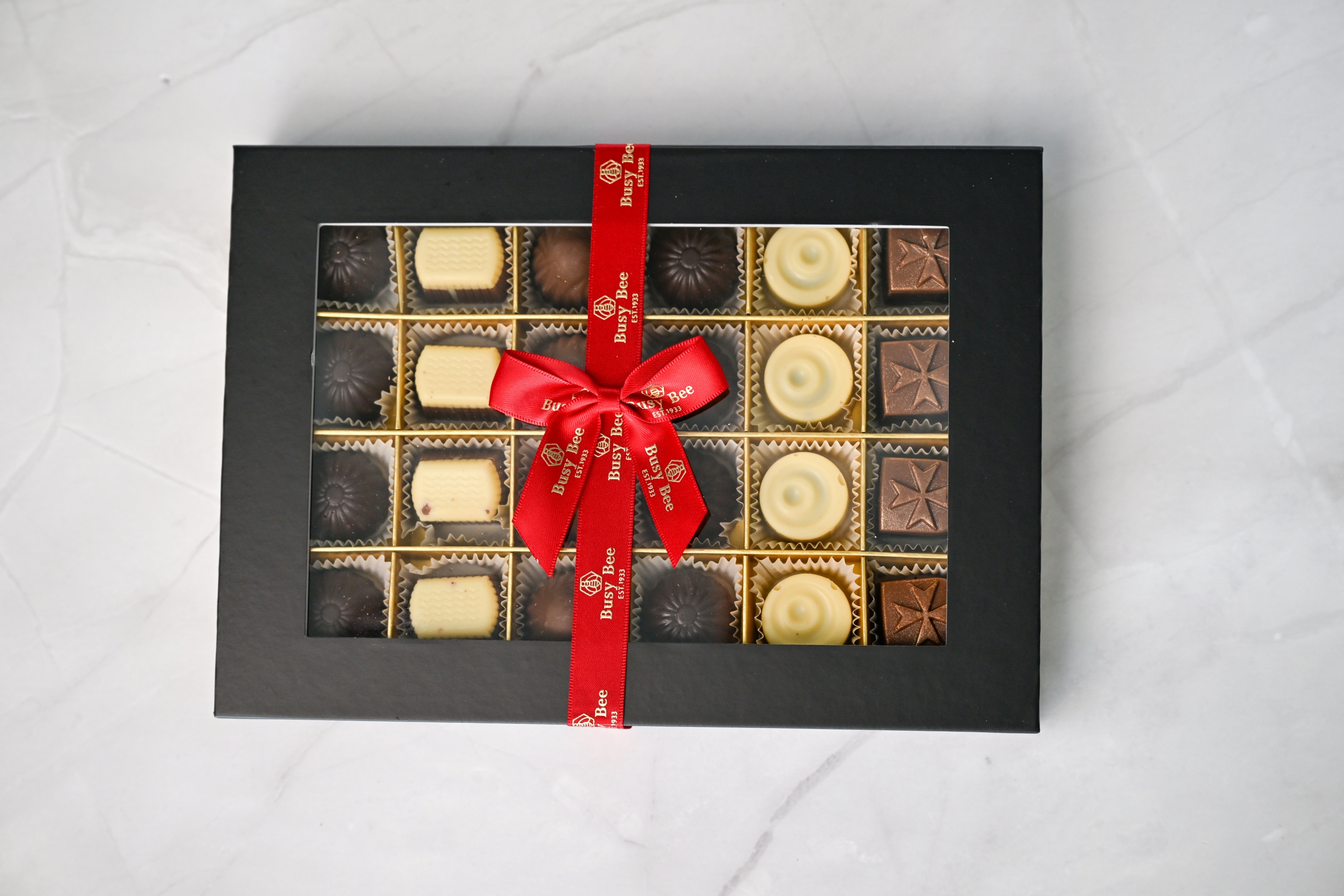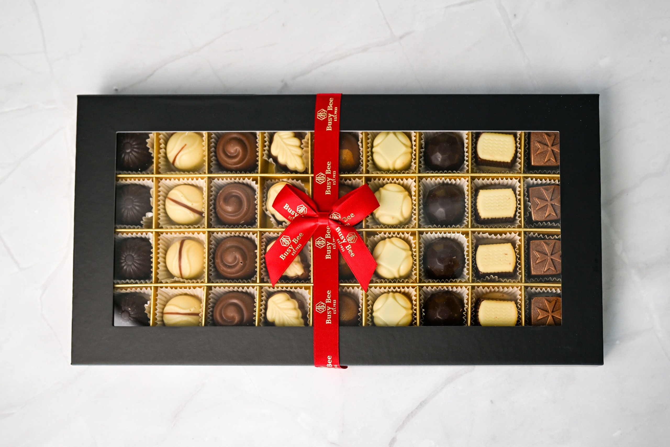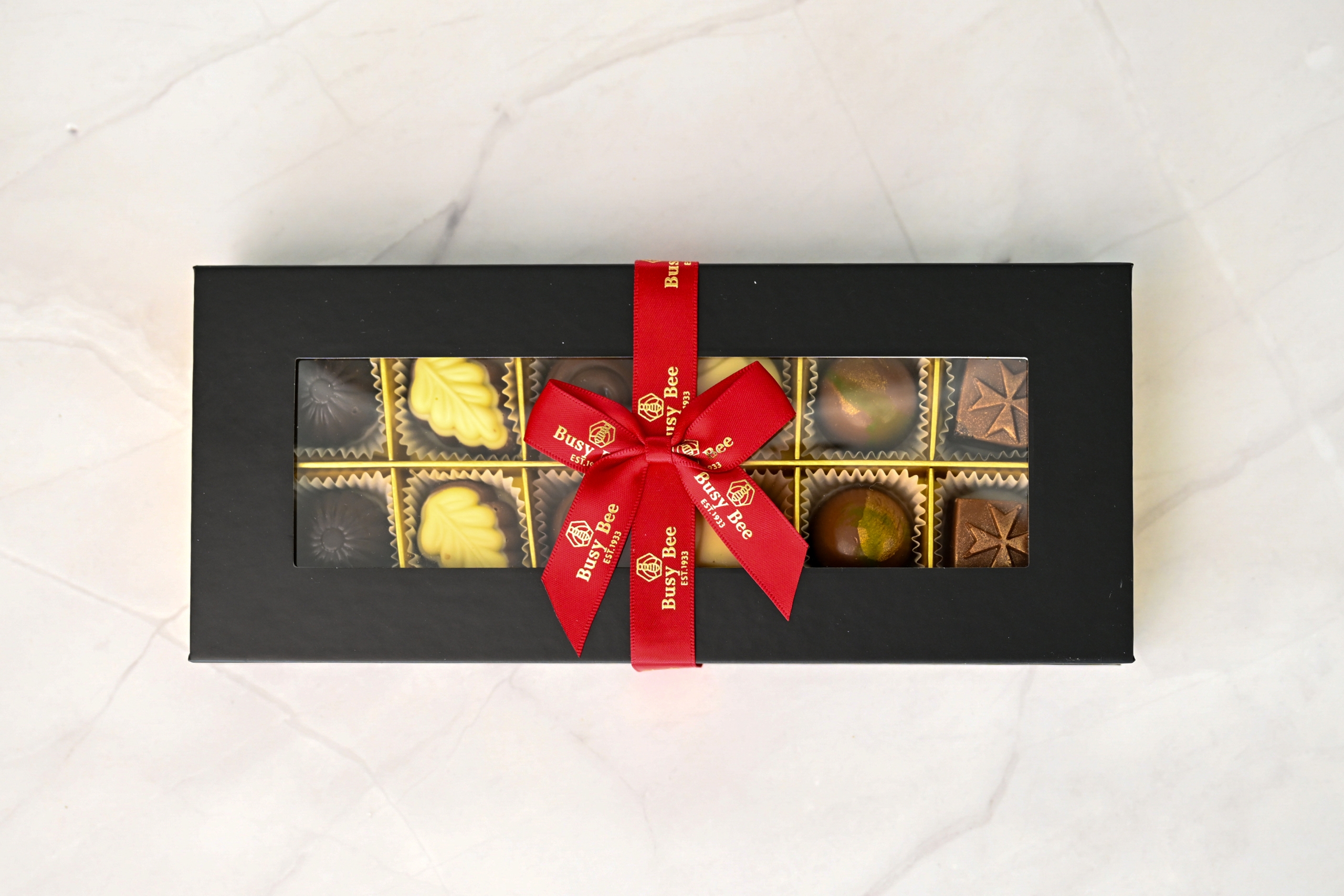 An elegant black box filled with our best-selling selection of fine Belgian chocolate pralines—crafted for true chocolate lovers.